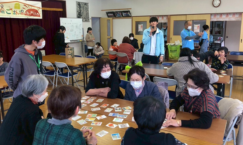 カレーができるまでの時間は、高校生、中学生、小学生のボランティア8人の進行により、風船バレーと中津川カルタを行いました。