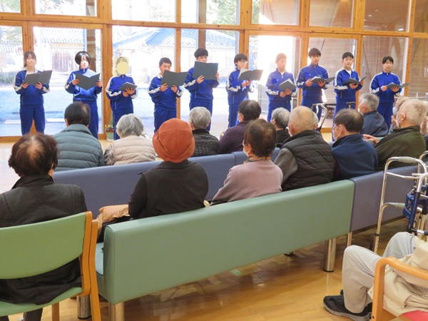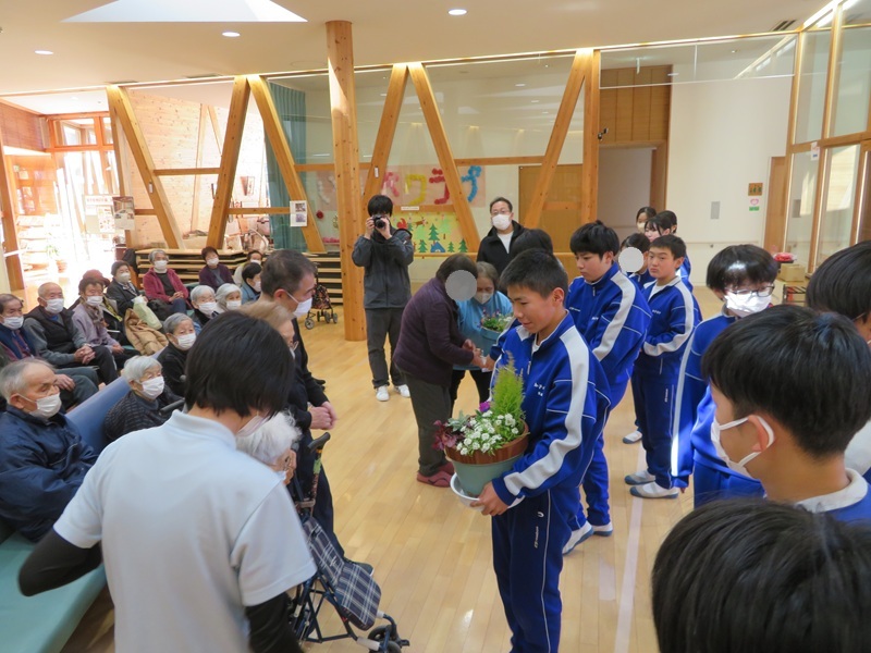 12月22日㈪加子母中学校1年生の生徒の皆さん12名が、加子母デイサービスセンターへ寄せ植えの花をプレゼントしてくれました。