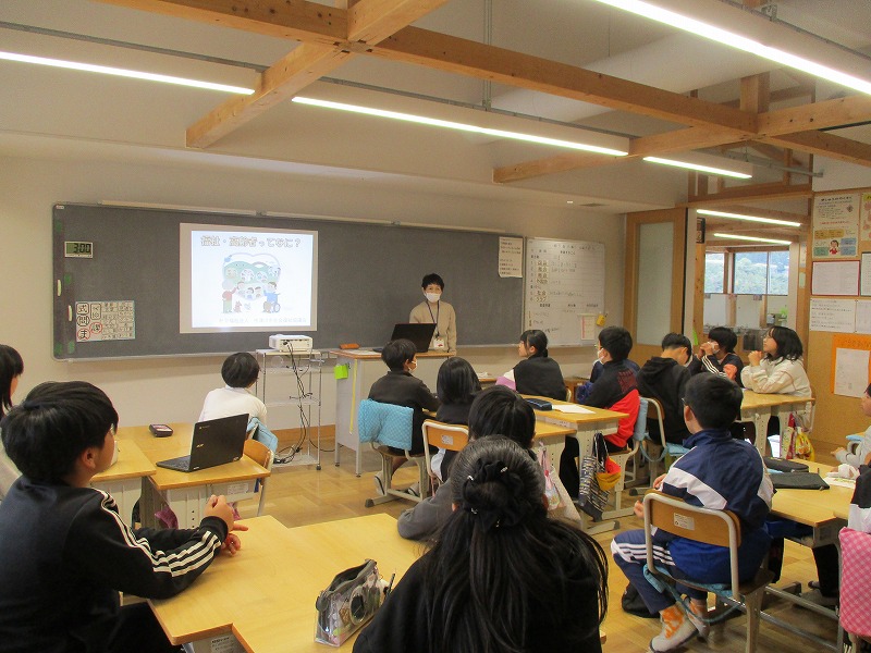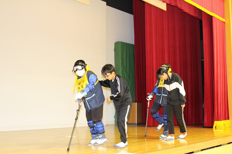 11月5日(水)に、福岡小学校6年生を対象に、福祉や高齢者についての講義と「高齢者疑似体験・車いす体験」を行いました。