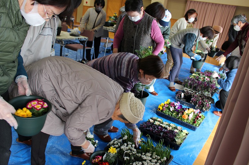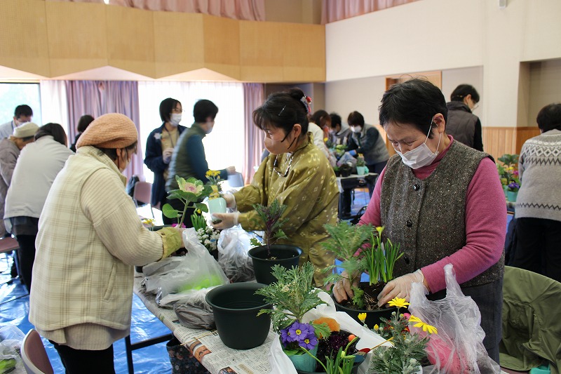 12月16日(火)に、ふくおか地区社協と中津川市北部地域包括支援センターと共催で、介護者のつどいを開催しました。27名の方に参加いただき、毎年好評の寄せ植えと座談会を行いました。