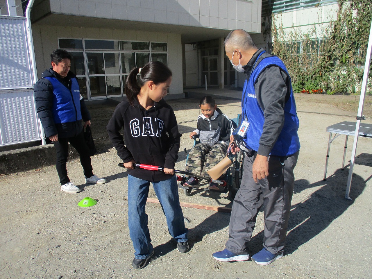 このコンセプトを受けて社協では、車いす牽引装置JINRIKIの体験と「自分たちができる安心のための取り組みを考えよう」というテーマでコーナーを考え、防災士なかつがわ会と西小学校PTAのボランティア5人に協力いただき、体験コーナーを運営しました。