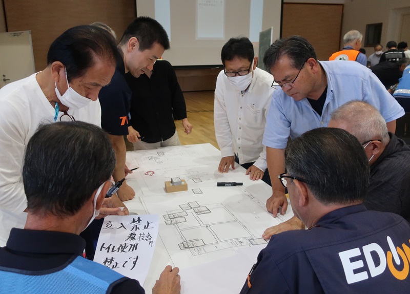 避難所運営ゲーム“HUG”では中津川市役所防災安全課 大嶋寛人氏を講師に迎え、自分事として考える避難所運営について学びました。 |