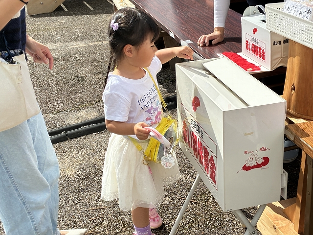 10月1日から全国的に展開されている「赤い羽根共同募金」の活動として、10月18日(土)つけち全国レディースクラフトフェアの会場内にて募金活動を実施しました。募金していただいた方には、手作りの動物風船等をお渡ししました。