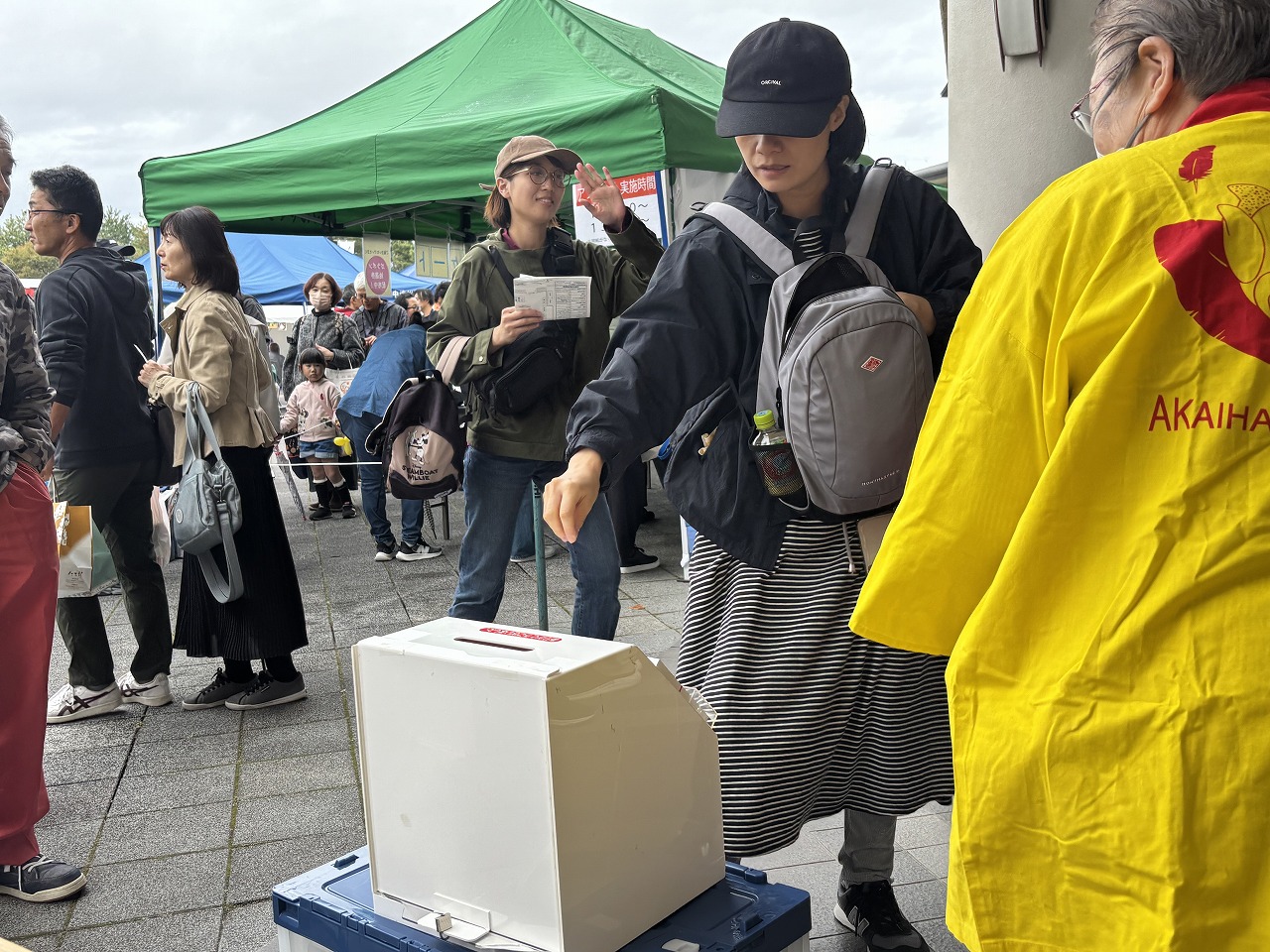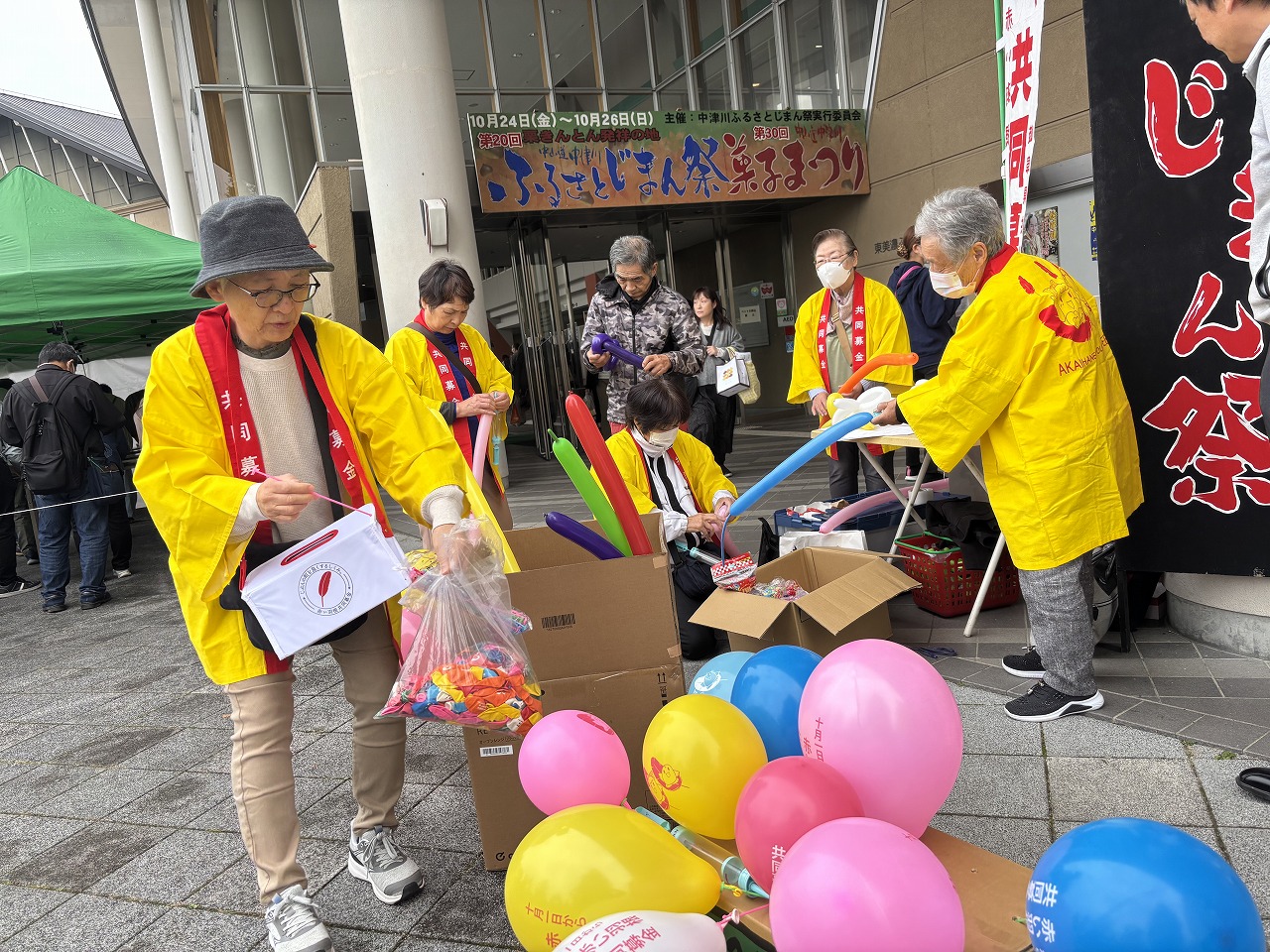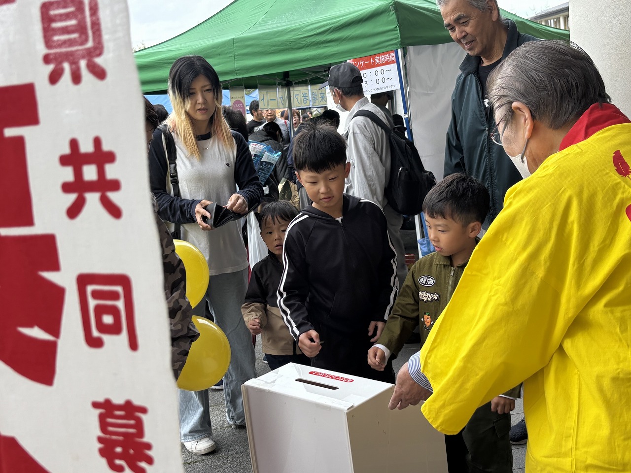 10月25日(土)、中津川ふるさとじまん祭(菓子まつり)会場で、中津川市ボランティア連絡協議会(参加者9人)により、赤い羽根共同募金の募金活動が行われました。