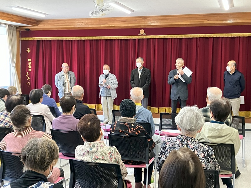 最後に中津西地区の老人クラブ(長寿会、みどり会、後田会、明和会、万寿会、胞寿会、五月会)の各会長があいさつされ、老人クラブ活動への参加や協力を呼びかけていました。 |