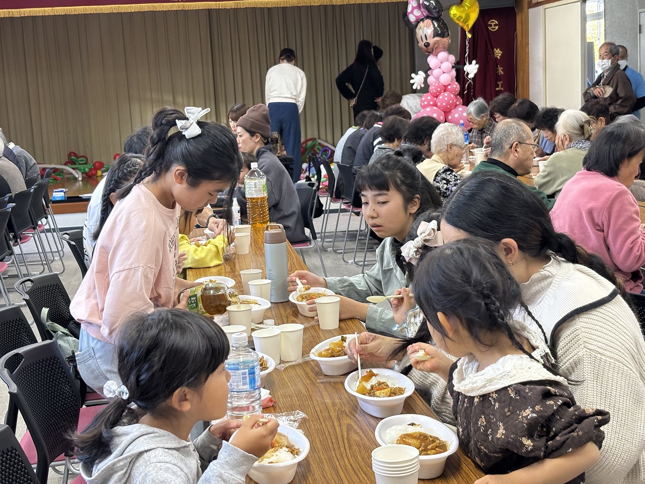 今回は桃山地区の高齢者ふれあいサロンと同時に開催することにより、三世代交流の機会としました。子ども連れの家族や高齢者の方、スタッフ合わせて100人以上が参加し、カレーライスを食べました。