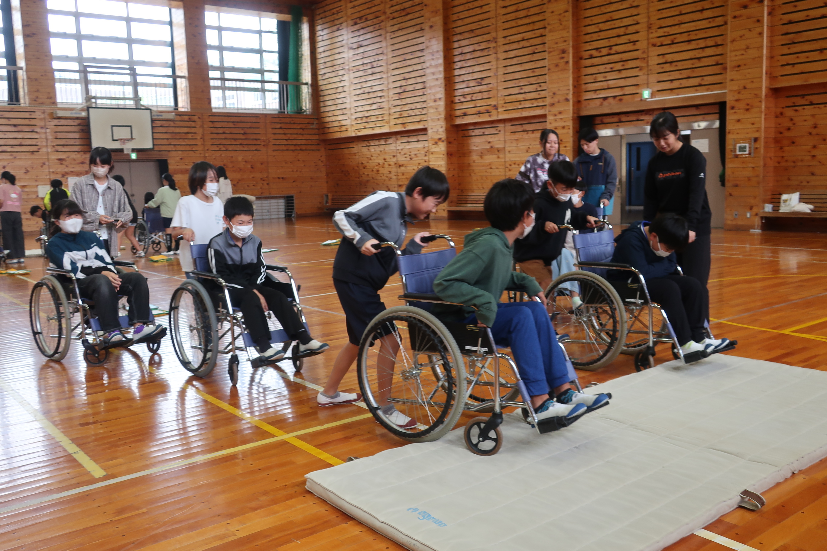 10月 28日(火)に中津南小学校6年生を対象に車いす体験、11月25日(火)に高齢者疑似体験を行いました。