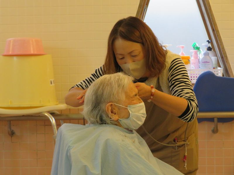 加子母デイサービスセンターささゆりでは、デイサービスへ来ている間に、髪の毛のカットなどをしていただく理美容(自己負担あり)サービスを11月より開始しました。