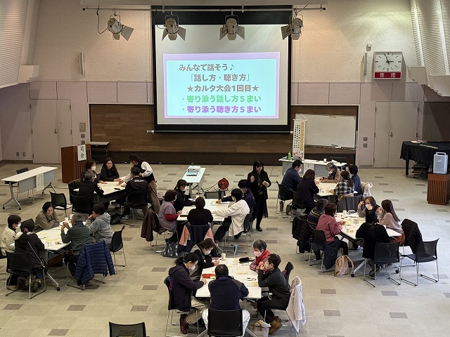 当日は、グループで「話し方・聴き方カルタ大会」を体験しながら、話し方・聴き方・伝え方のポイントについて学びました。参加者同士の交流を通して、日頃の関わり方を振り返る有意義な時間となりました。