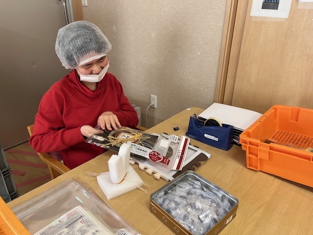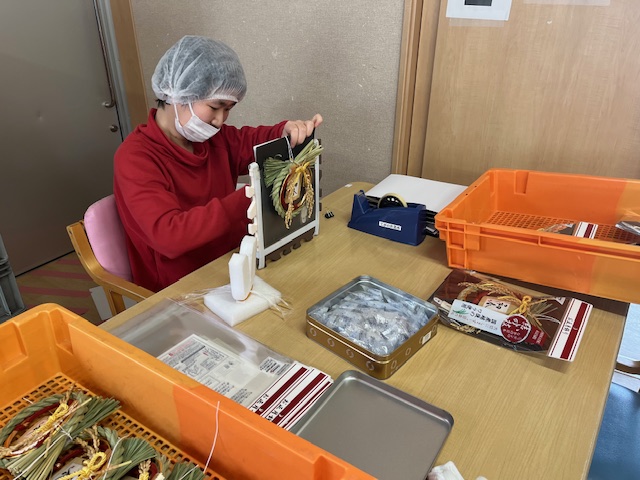 お正月飾りの製作、封入作業の仕事です。