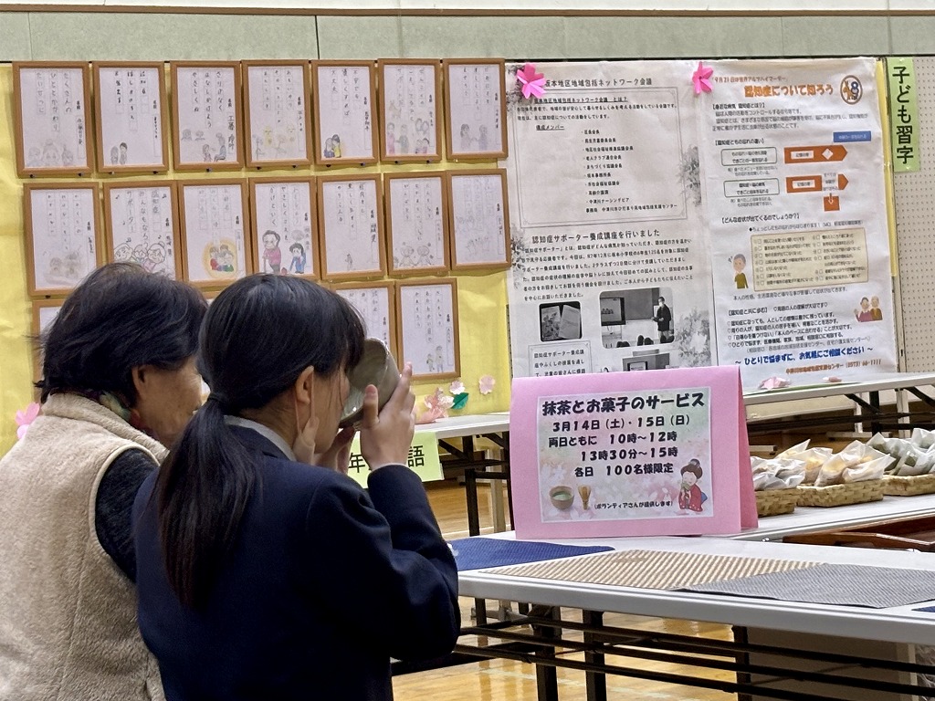 会場では、抹茶とお菓子も提供され、来場者がゆったりと交流を楽しめる場となりました。