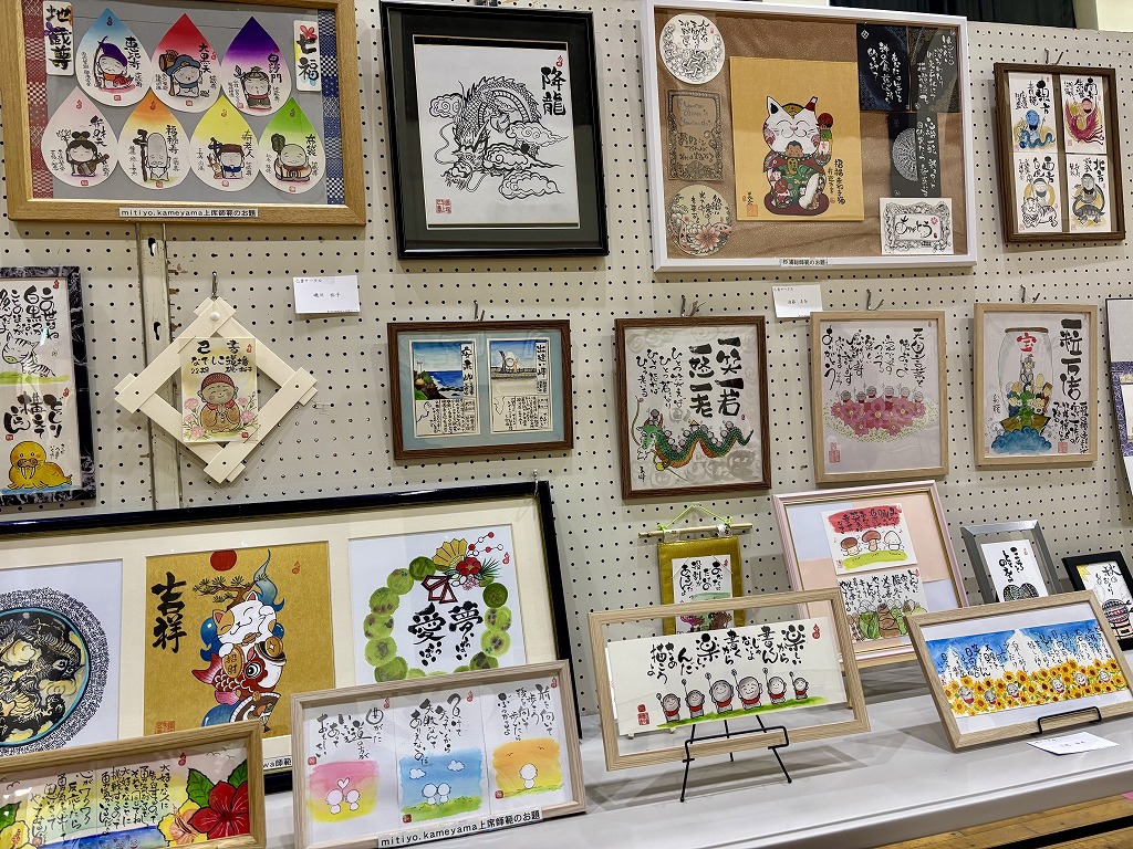 絵画や書だけでなく、つるし飾りや己書など様々な作品が展示され、来場者を楽しませてくれました。 |