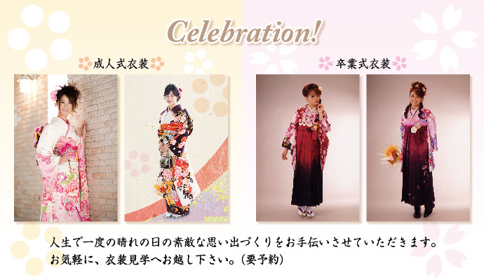 振り袖、紋付、羽織袴などの成人式用衣装や、卒業式用衣装の貸出について、令和8年の成人式用衣装の予約を、令和7年1月20日(月)より開始しています。ご希望の方は、お気軽にお問い合わせください。