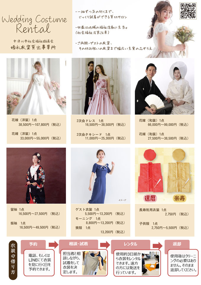 衣装貸出にて生じる収益は、地域の福祉活動に充てられる財源となっています。(社会福祉法第26条に規定する収益事業)