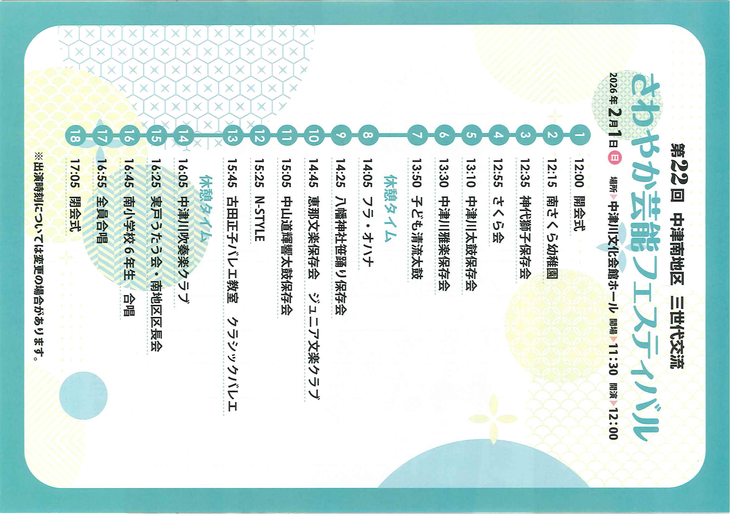トップページ > お知らせ > 第22回 中津南地区 三世代交流 さわやか芸能フェスティバルのご案内!!