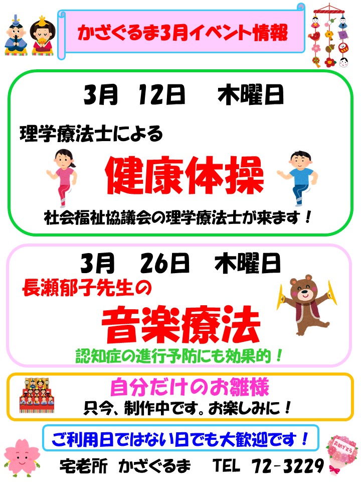 お知らせ ふくおか 宅老所『かざぐるま』3月イベント情報☆