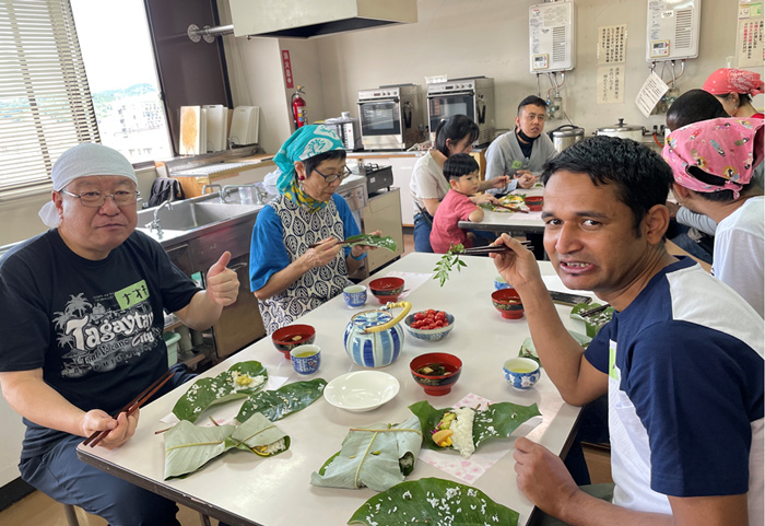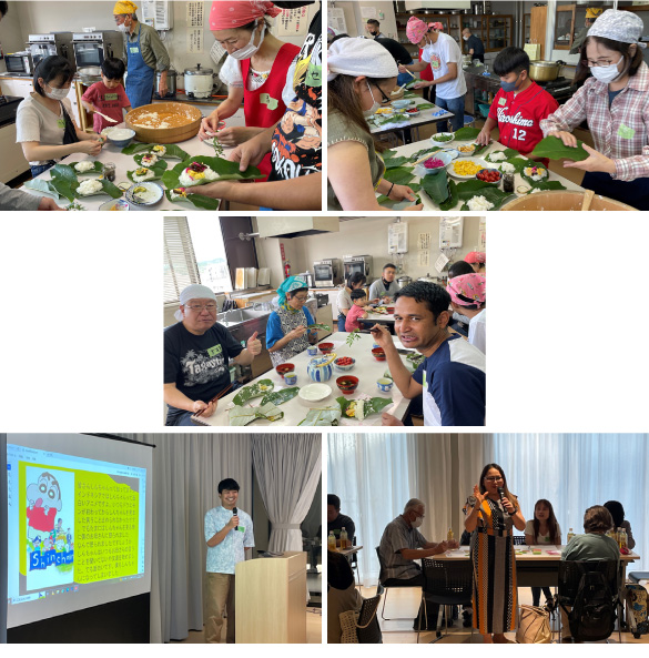 また、朴葉寿司づくり体験(写真上3枚)や「にほんごで話そう・交流会」(写真下2枚)などの楽しいイベントも行っています。
