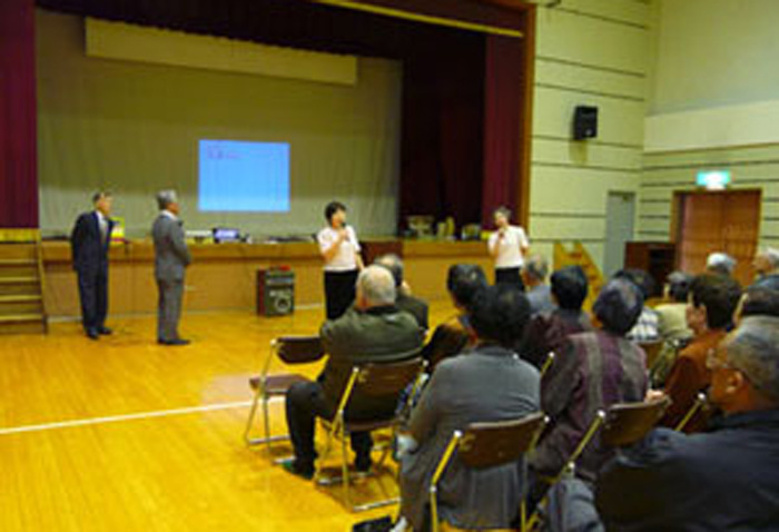 歌詞と映像を大きく映して行うため、見ている方も 自然と参加していただけます。