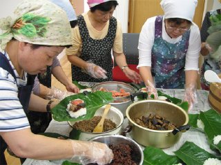 ささゆりボランティア会では、月に2回(第1・第4木曜)市の委 託事業である「高齢者等配食サービス」のお弁当作りと、支部事業の「ひとり暮らし高齢者ふ れあい食事交流」の配食弁当と昼食を作っています。1回に作るお弁当は20食から70食くらいです。